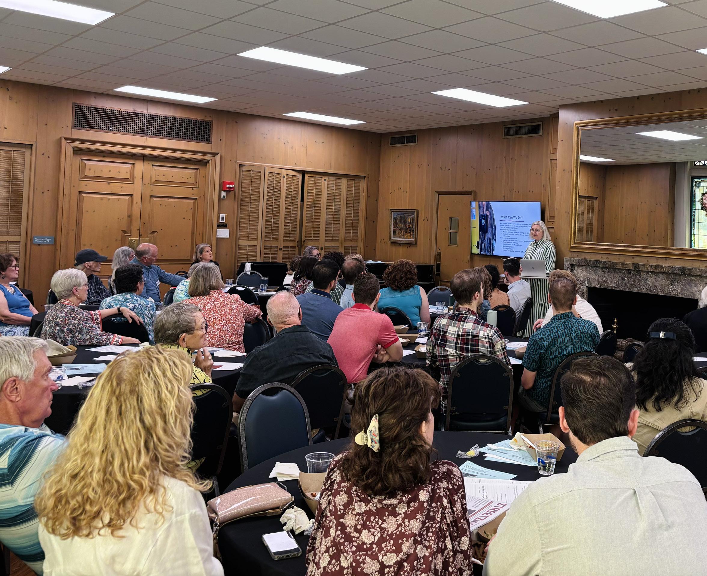When we hosted, we welcomed neighbors into the church and shared a meal that celebrated our story of faith and community. At another gathering, lay leader Janet Billhartz shared, “I found myself the