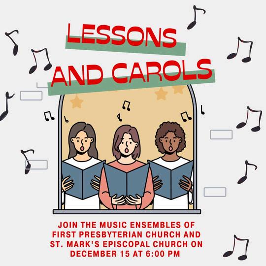 Lessons and Carols: On December 15 at 6:00pm, First Arts will host a Lessons and Carols service, blending scripture and song to mark the season of Advent.