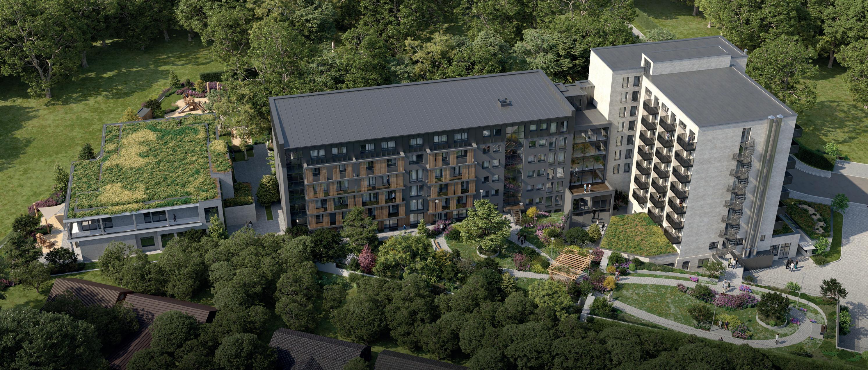 Nachhaltige Quartiersentwicklung bestehend aus Pflegeeinrichtung mit Tages- und Kurzzeitpflege, Café und Kita sowie Senior Living mit Wohnraumkonzept.