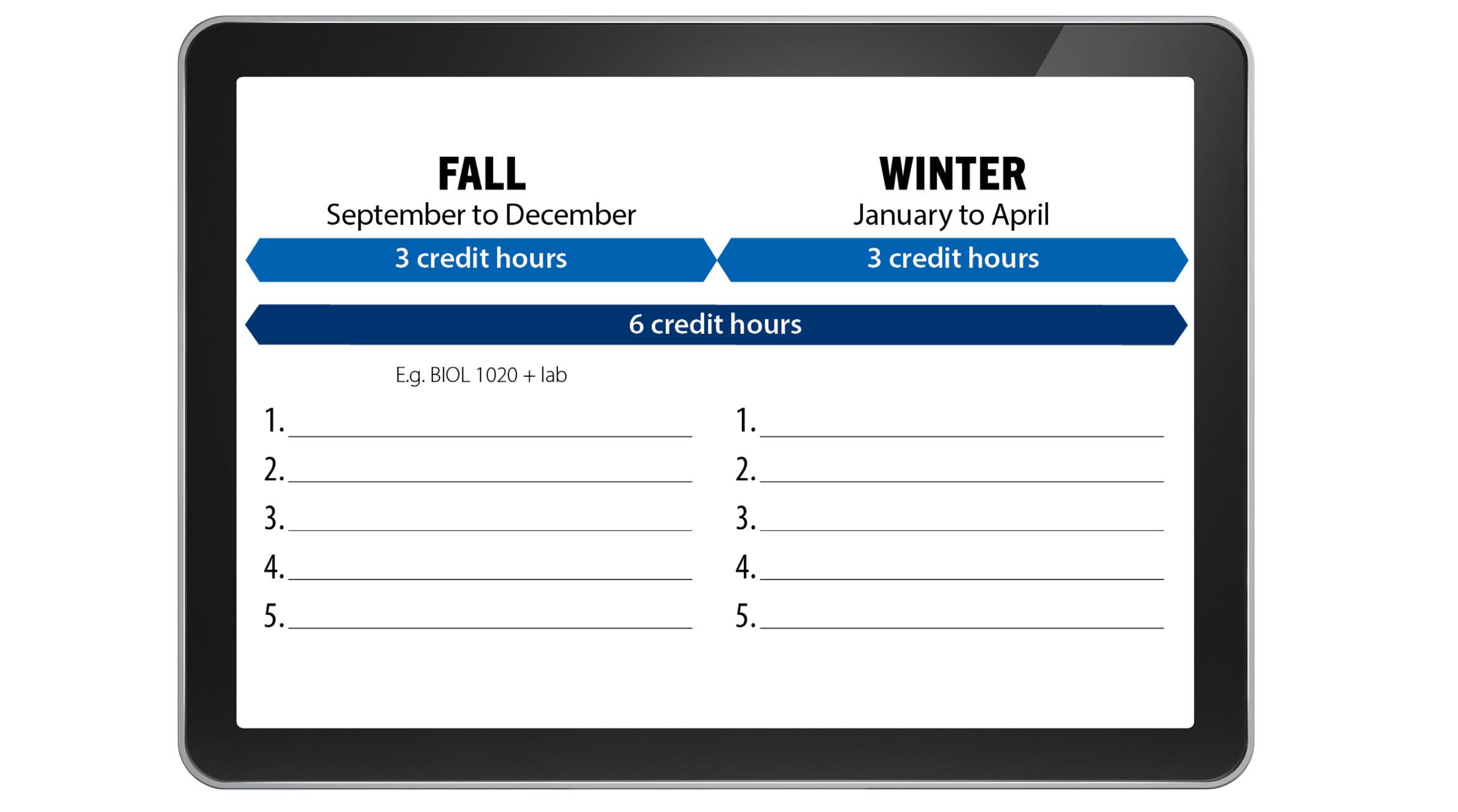CREDIT HOURS – The hours of credit assigned to a course. 3 credit hour courses run over one term (ex. September-December, January-April). 6 credit hour courses run over two consecutive terms and are called 'spanned' courses.