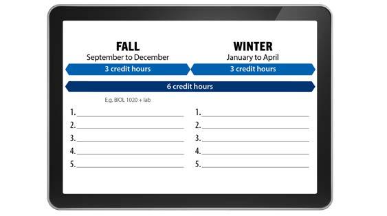 CREDIT HOURS – The hours of credit assigned to a course. 3 credit hour courses run over one term (ex. September-December, January-April). 6 credit hour courses run over two consecutive terms and are called 'spanned' courses.