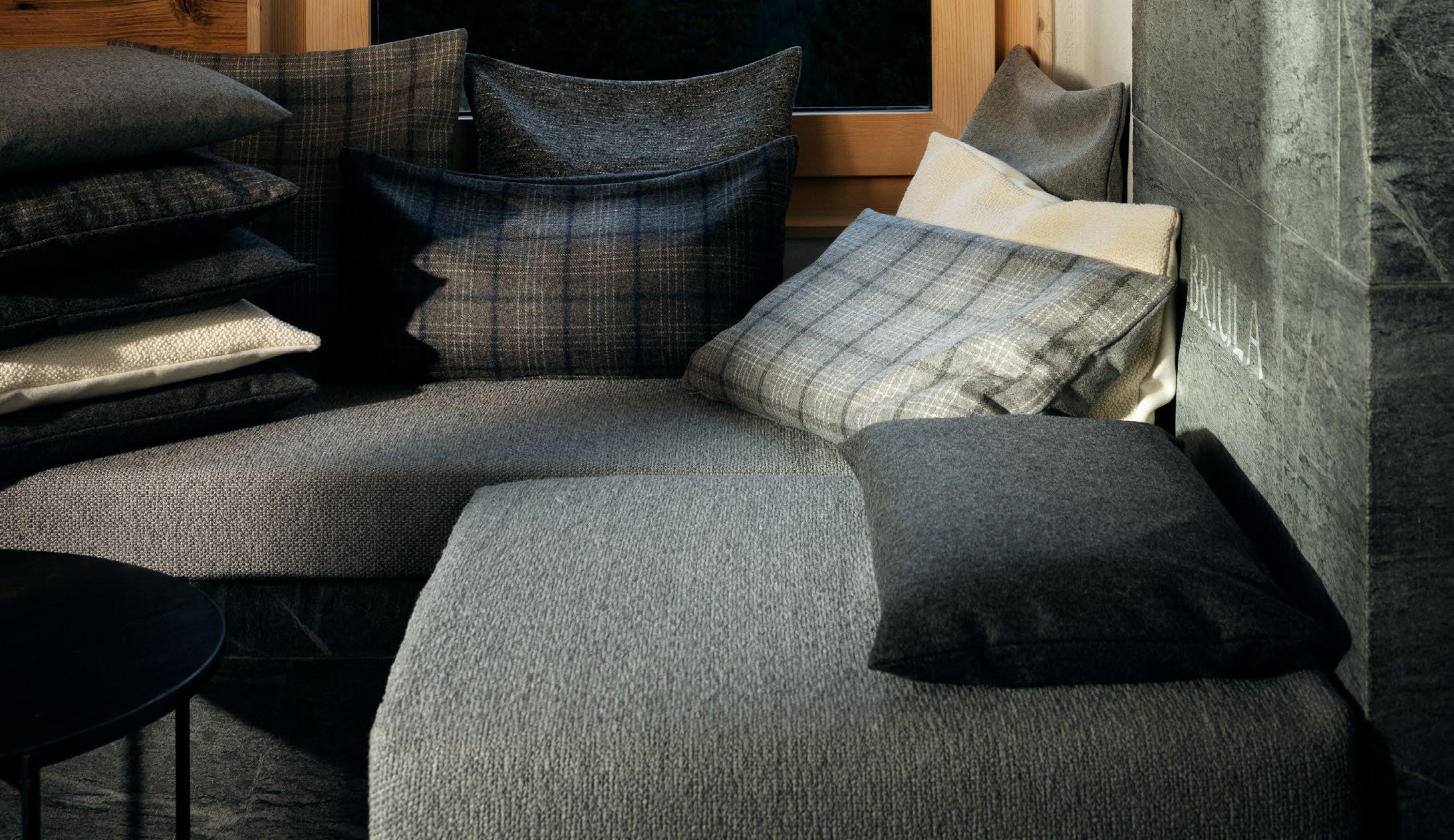 BENU MOUNTAIN RECYCLED is een bijzonder zachte gordijn- en meubelstof. Het levendige oppervlak is gecreëerd door het gebruik van een wollen ondégaren en een uitzonderlijk pluizig chenillegaren.