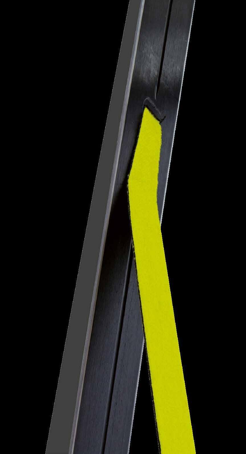 The easiest way to attach climbing skins: combination of adhesion and click-in-place for reliable grip and straightforward attachment and removal.