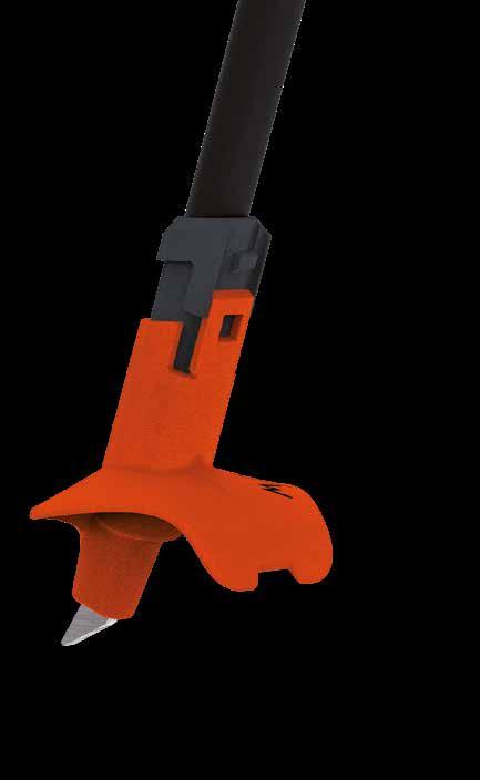 For the initial installation of the strap, it must first be inserted into the channel provided in the grip. Then the wedge is pushed laterally through the eyelet of the strap into the grip. The clicking sound confirms that the insert is locked in place and the strap is secured against accidental loosening or misadjustment.