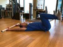 Abbildung 2: Übung mit Miniband. Die Hüftmuskulatur und das Hüftgelenk auf der einen Seite werden mobilisiert und gekräftigt, während auf der anderen Seite das feststehende Hüftgelenk und die dort ansetzende Muskulatur stabilisiert und gekräftigt werden.