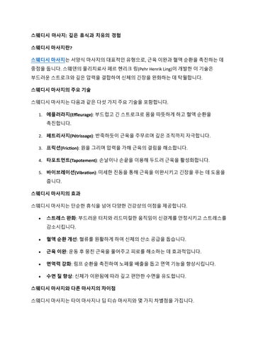 스웨디시 마사지: 깊은 휴식과 치유의 경험