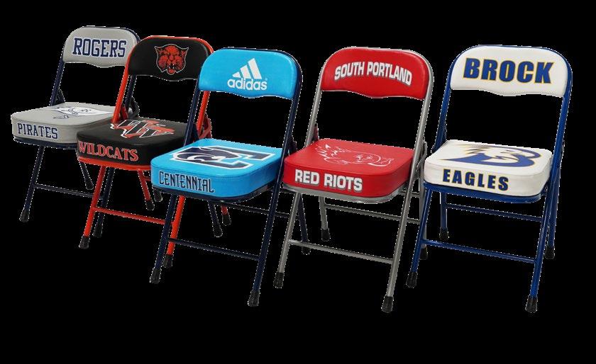 The chair backrest is 1” closedcell foam covered in 30 oz. vinyl. Included in the cost of the chair is a 2 color print of your school name, mascot or logo. Maximum print dimension is 5” high x 13” wide.