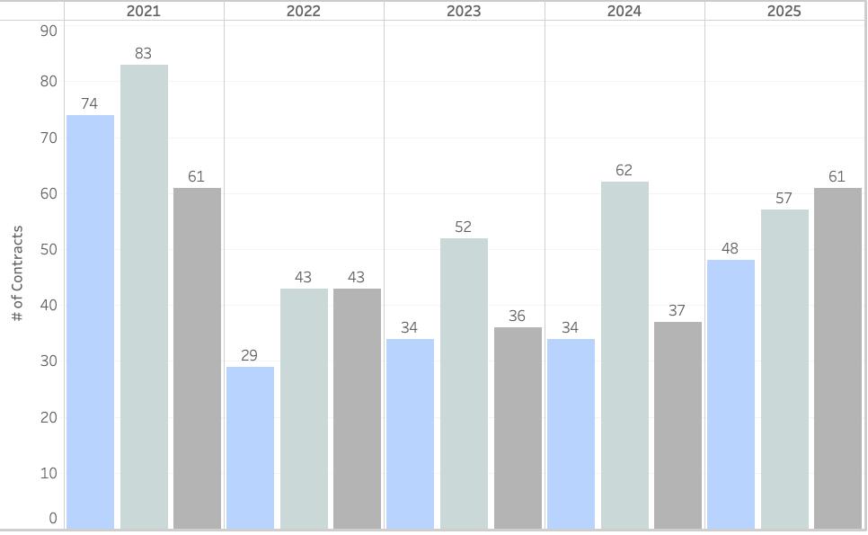 • While the number of new purchase contracts showed a moderate gain from August, it was notably higher than the previous three September totals. Of the contracts that were publicly recorded during September, the majority (25%) were for properties last priced between $2 million and $3 million. The next highest segment was for properties last listed between $3 million and $4 million. There were also seven contracts for the ultra-high-end ($10M+) suggesting we should have a robust fourth quarter.