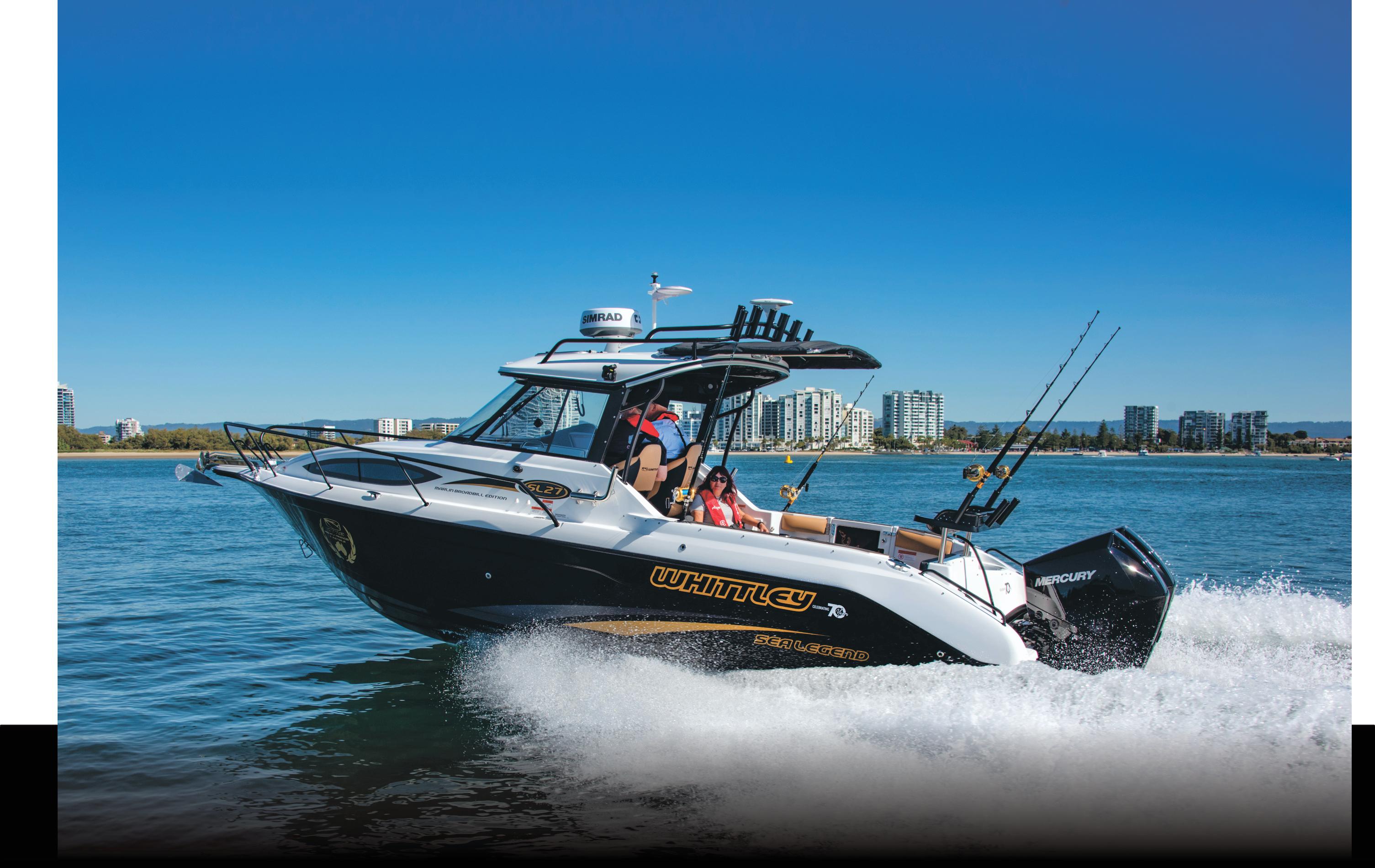driving them,” Phil continued, after explaining that they are eminently seaworthy and capable of chasing tuna well offshore on the right day. We believe these boats would be right at home in the bays and rivers of Australia, offering shade and comfort in sufficient quantity to get the family
