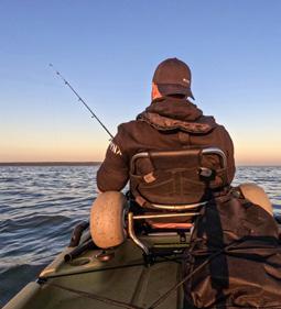 idea of the zone and depth I like to fish in. The mudflats are consistently featureless, so the trick is to move around until you cross paths with active fish. I like to start within a few hundred metres of the main channel. It’s a fair hike from the shoreline in a kayak but I theorize that most fish move in and out of the deeper water throughout the tide cycle. When I reach this area and my sounder shows a depth of over 2m, I’m ready to go.