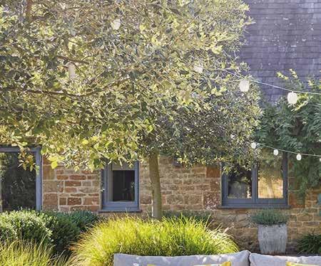 A small garden full of a wide variety of rare and common plants under the canopy of the catalpa bignonioides and a metal sculpture designed by Mark Lacey. Colour and scents abound.