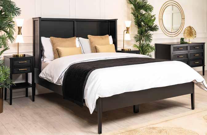 If you’d love to embrace monochrome in your bedroom, My Furniture has created the new Kingston Wicker collection, taking inspiration from luxury Caribbean hotel interiors. On-trend wicker detailing softens the look of the pieces in this range. The Kingston Wicker Bed is made from solid wood, with a durable black polyurethane