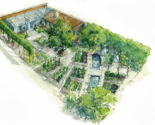 The Savills Garden - designed by Mark Gregory, built by Landform Consultants Ltd. The Savills Garden evokes the experience of stepping into the intimate walled garden of a country hotel. The combination of beautiful ornamental and edible planting provides a tranquil retreat and a source of the very best in flavours and nutrition. - cooking for the Chelsea Pensioners in a working kitchen, set amongst edible planting for a true ‘from plotto-plate’ experience.