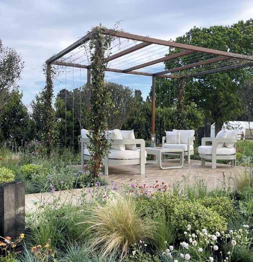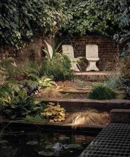 the property. Within this garden space, two different seating areas are defined; one level with the internal living room and can be used as a public space for entertaining and another further back, more private. These are separated by a wildlife pond and path interwoven within the planting, creating moments for pause and contemplation.