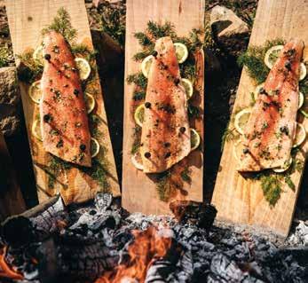 granite tors, gravel bikes crunching through woodland trails, even catching the odd wave, should the surf report allow. Children disappear on their own adventures: climbing trees and roaming footpaths, pressing flowers, watching dragonflies on the pond, trading tricks with the farm’s resident pups. You’ll eat well, this much is certain. Seasonal, unpretentious, generous, gathered from the gardens and grown on the farm. Much of what we serve, we grow ourselves. What we can’t grow, we source with intention from local producers who think the same way as we do. One evening in The Refectory might see regenerative Shorthorn beef reared slowly in our own fields and served with a tangle of garden herbs; the next, poached halibut and our Executive