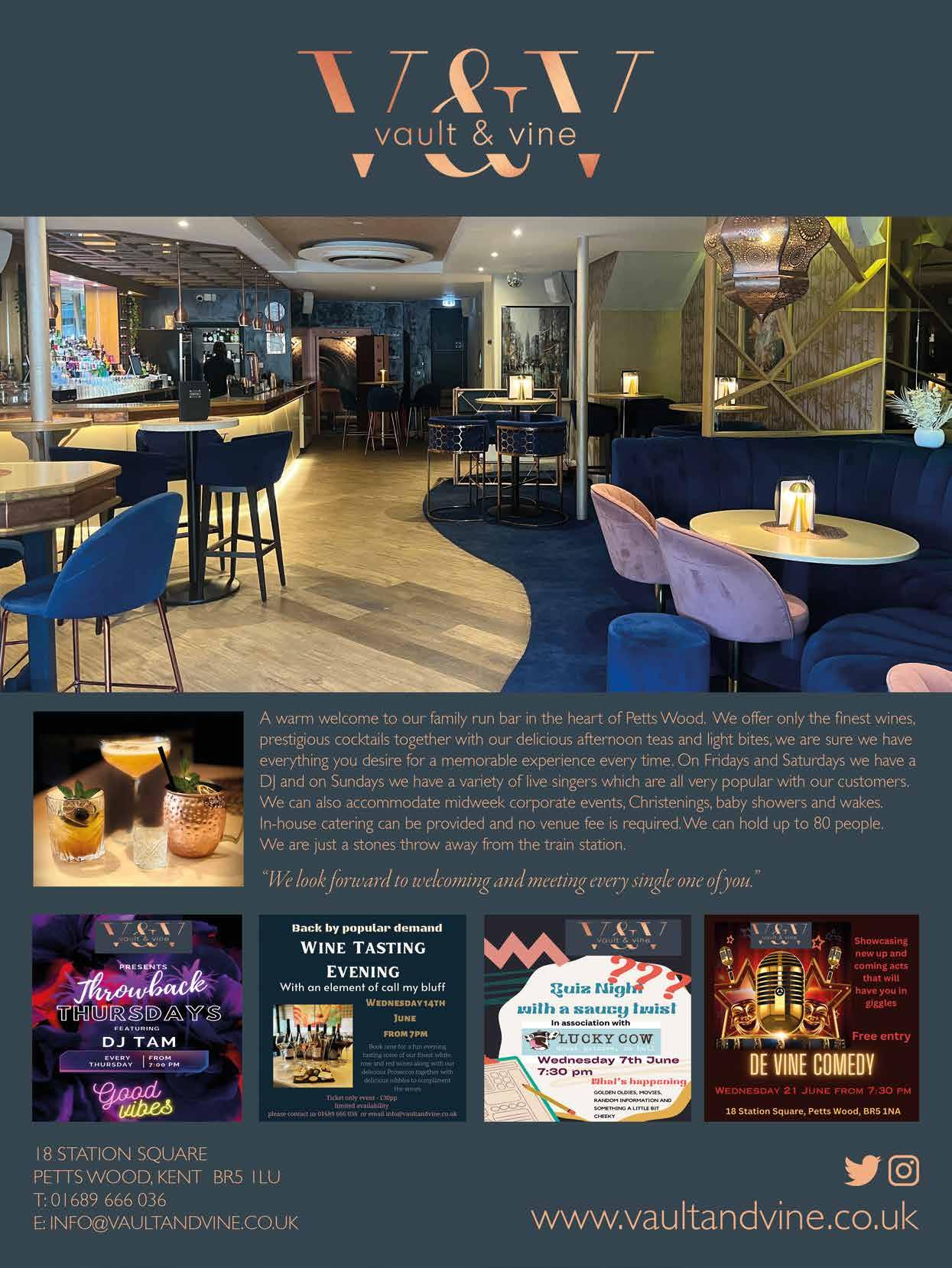For any further information please visit our website www.vaultandvine.co.uk or you can email us on info@vaultandvine.co.uk or call us on 01689 666 036