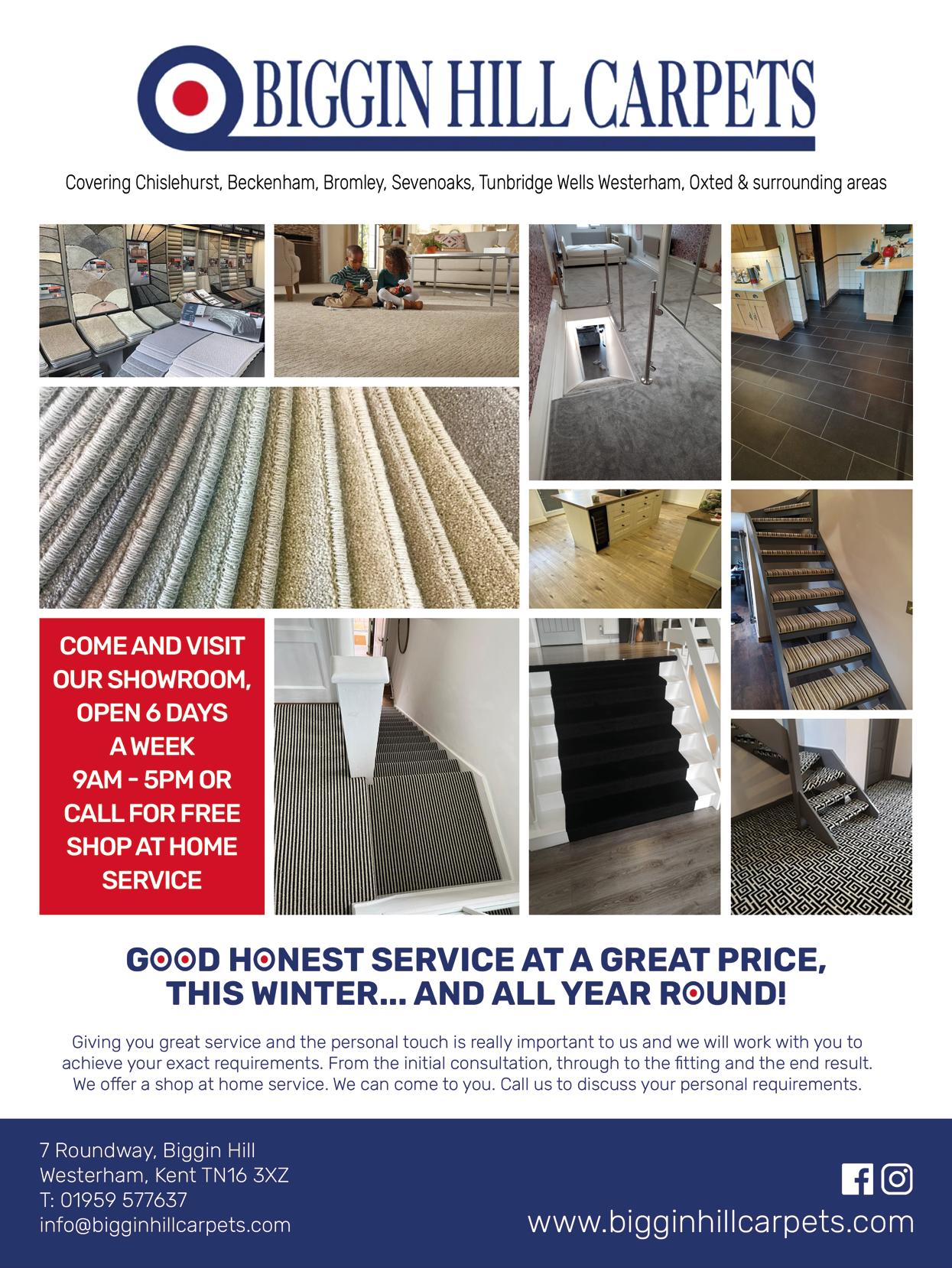 Biggin Hill Carpets is a domestic flooring specialist supplying quality carpets and vinyl to homeowners in Biggin Hill, Westerham, Tatsfield, New Addington and Orpington.
