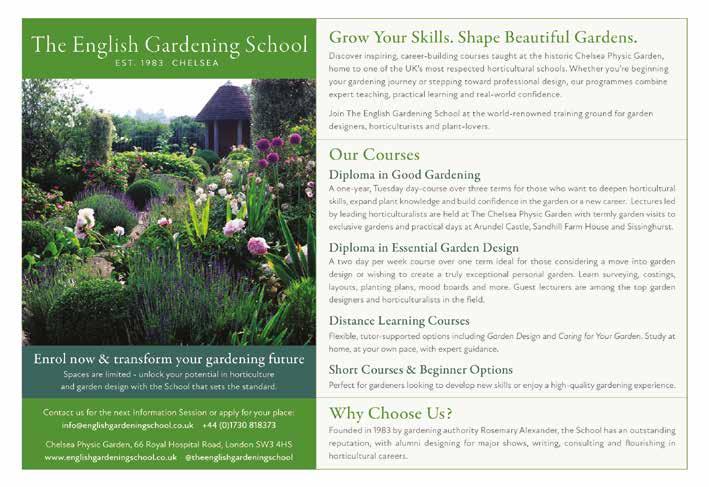 Graduates of The English Gardening School go on to become designers, gardeners, consultants and writers, with many achieving recognition at major horticultural events. Yet whether students pursue professional pathways or simply wish to nurture their own gardens with greater confidence, the School’s ethos remains the same: to deliver lifechanging learning in an inspiring environment. Offering knowledge, creativity and a welcoming community of like-minded garden enthusiasts, The English Gardening School continues to shape the next generation of gardeners and designers at the heart of Chelsea.