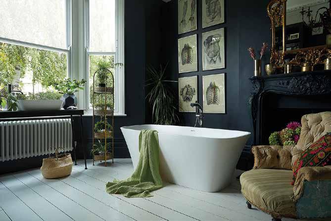 “Create a stunning statement using the strong silhouette of the matt stone Haze Freestanding Bath as a centrepiece, complemented with its co-ordinating countertop basin from the Elements Collection”