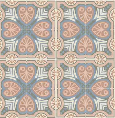 “The soft, muted tones will add interest without dominating the scheme while the striking pattern pays homage to the scallops and fans found in Art Deco styling.