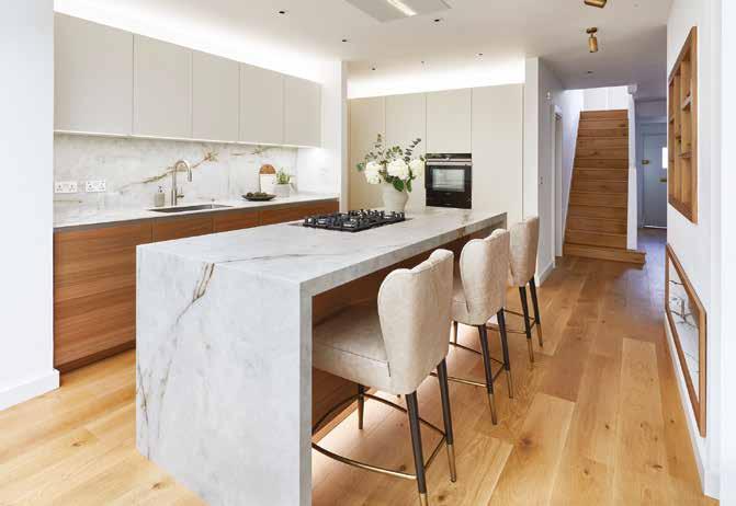 Akitchen design that effortlessly marries simplicity, elegance and functionality, using a combination of ‘Natural Nut Tree’ and ‘Blossom White’ doors alongside the exquisite Neolith ‘Himalayan Crystal’ worktops. With a soft and elegant colour palette, this kitchen embodies a sense of tranquility and warmth, perfectly reflecting the client’s desire for a clean and inviting space.