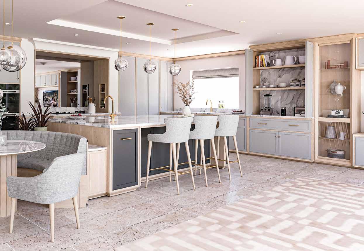 Our 2023 range offers all the modern developments in kitchen design, including reduced plinth heights and the TIP-ON touch opening system, together with specialised utility room furniture providing a myriad of clever storage solutions.