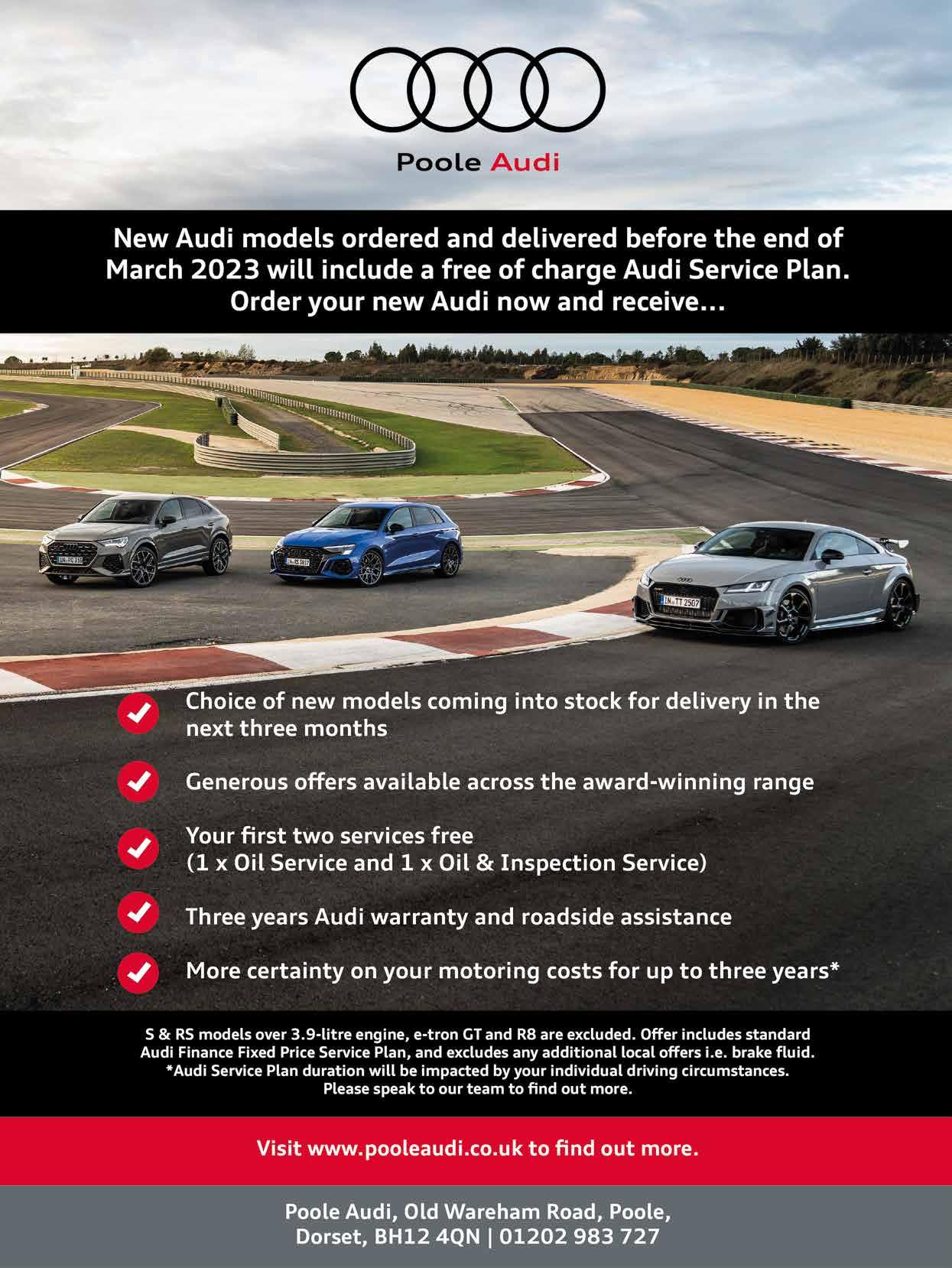 These partnerships mean that in addition to enjoying the latest Audi performance, technology, and luxury, Poole Audi customers can enjoy exclusive experiences and benefits in Dorset. To find out more, visit pooleaudi.co.uk/partnerships