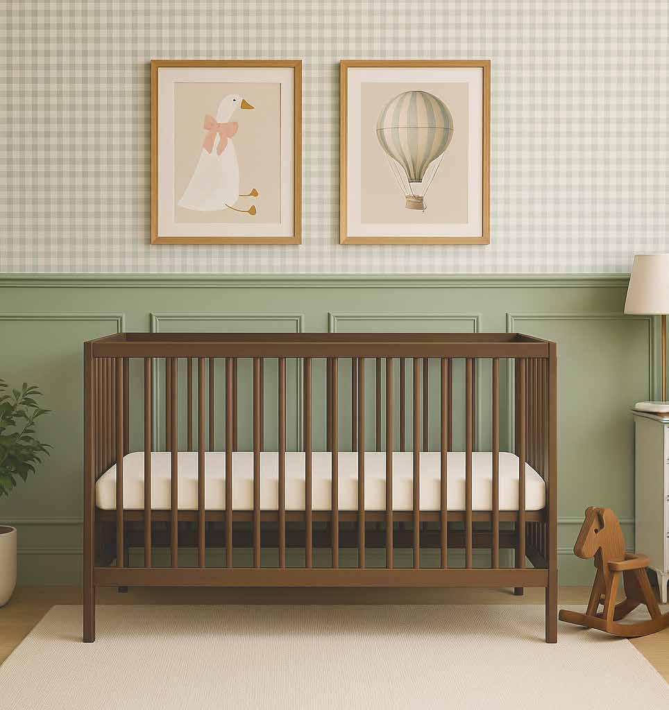 Our newest colour, walnut, has quickly become a favourite! Inspired by timeless vintage nurseries yet designed for modern life, this rich hue brings a touch of elegance and warmth to any space. It features the same solid beechwood construction, finished with a beautiful walnut stain for a vintageinspired cot that will be a cherished piece for years to come.