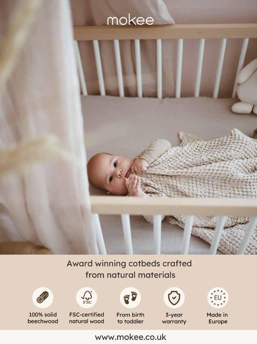 The heart of our collection are our awardwinning cot beds, crafted in Europe from solid beechwood with no chemicals or harmful finishes. Available in two sizes and seven colours, they easily convert to toddler beds, growing with your child from newborn through to their preschool years. Every cot bed comes with a 3-year guarantee and free delivery for complete peace of mind.