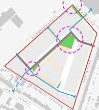 A map from the consultation shows the new road through the site, with exits on Goodneston Road (left) and Enfield Road (right), in brown and pedestrian routes in blue, including exits onto Lodge Causeway (bottom) and Filwood Road (top).