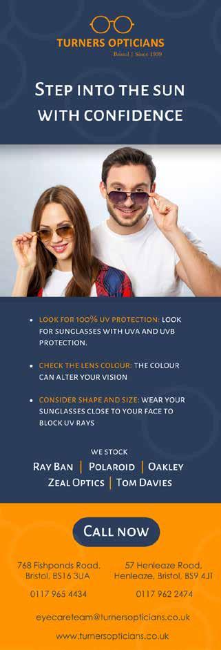 When are you going to be wearing your sunglasses most? Just out for a walk? Then stylish Ray Bans will do the job. But if you’re into outdoor sports a pair with impact resistance, like the Oakley range, are recommended. If you spend time near water and snow, Polarised lenses can reduce glare. We stock all these brands in both our Henleaze and Fishponds branches. If you wear prescription glasses, don’t forget to get prescription sunglasses to avoid discomfort.