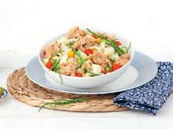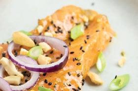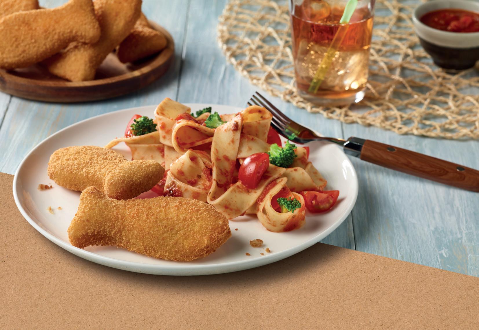 op kant-en-klare maaltijden, zoals stoofvlees, kip pilav en vis pangang, een fruitige zeebaarsfilet met spinazie en crunchy kabeljauw met maaltijdsaus ketjapsmaak.