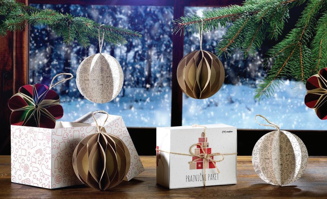 Zavezali smo se, da bomo poskušali odpadke predelati, spremeniti in jim s tem vdahniti novo življenje. Ko se na zalogi pojavi povečana količina odpada, se za oddelek razvoja začne »brainstorming«. Zadnja dva izdelka, ki sta nastala iz odpadkov, sta praznična paketa. Pri prazničnih okraskih za smrečico smo porabili papir, ki se med postopkom strojnega štetja poškoduje. Papir smo potiskali in razsekali na kroge, iz katerih nastanejo okraski. V paketu okrasnih nalepk za steklo je vključen material, ki je bil prvotno namenjen za stenske nalepke. Ker je materialu potekel rok uporabnosti in ni bil več primeren za lepljenje na hrapave površine, smo njegov namen spremenili.