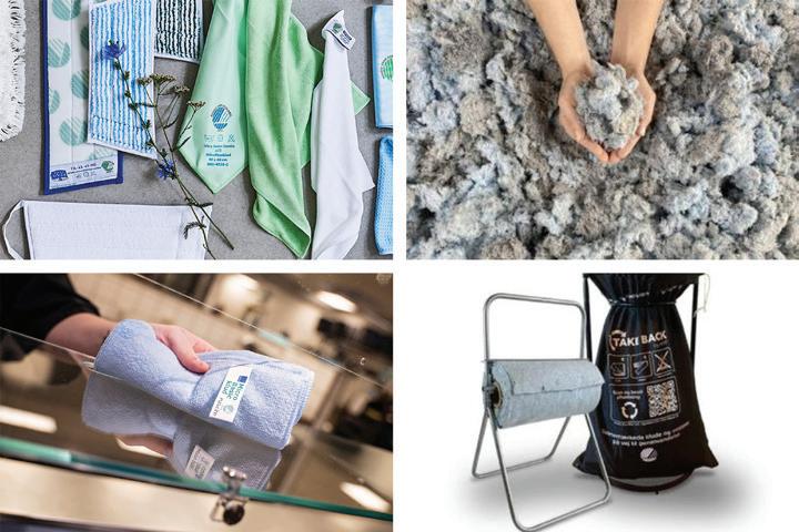 Skupina ABENA, katerega del je tudi slovensko hčerinsko podjetje Abena-Helpi d.o.o., nenehno išče načine, kako v svoji dejavnosti zmanjšati vpliv na okolje. Eden od primerov dobrih praks je sistem TAKE BACK, ki so ga vpeljali na Danskem. Krpe iz mikrovlaken so izredno učinkovite, a zaradi mešane sestave jih je težko razvrščati in reciklirati, zato gredo po uporabi v sežig. S sistemom TAKE BACK pa se jim podaljša življenjska doba. Obrabljene krpe in mopi se odložijo v vrečke TAKE BACK. Ko je vrečka polna, se odpelje v objekte za recikliranje Nordisk Microfiber, ki je kot prvo na svetu našlo način za recikliranje mikrovlaken, da bi se izognili sežigu po uporabi. Krpe in mopi se razstavijo, stisnejo in povežejo v industrijski zvitek, ki se lahko uporablja za brisanje, pogrinjanje, popivnanje v delavnicah, bolnišnicah in drugih ustanovah. Industrijski zvitki so običajno izdelani iz papirja, ki je naravni vir. Zato se je pojavila zamisel, da bi papir nadomestili z recikliranimi mikrovlakni, ki bi še vedno imela visoko vpojno zmogljivost.