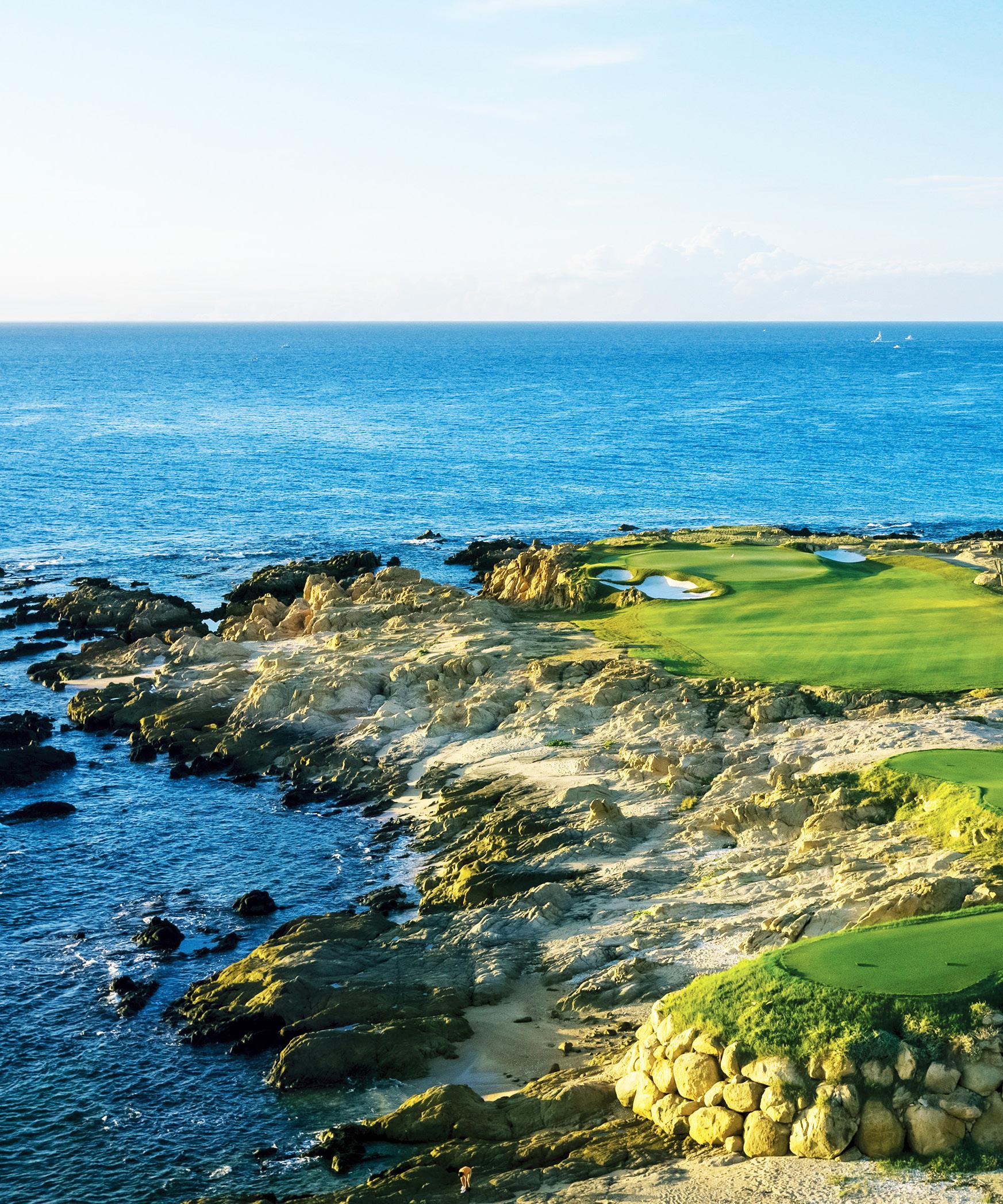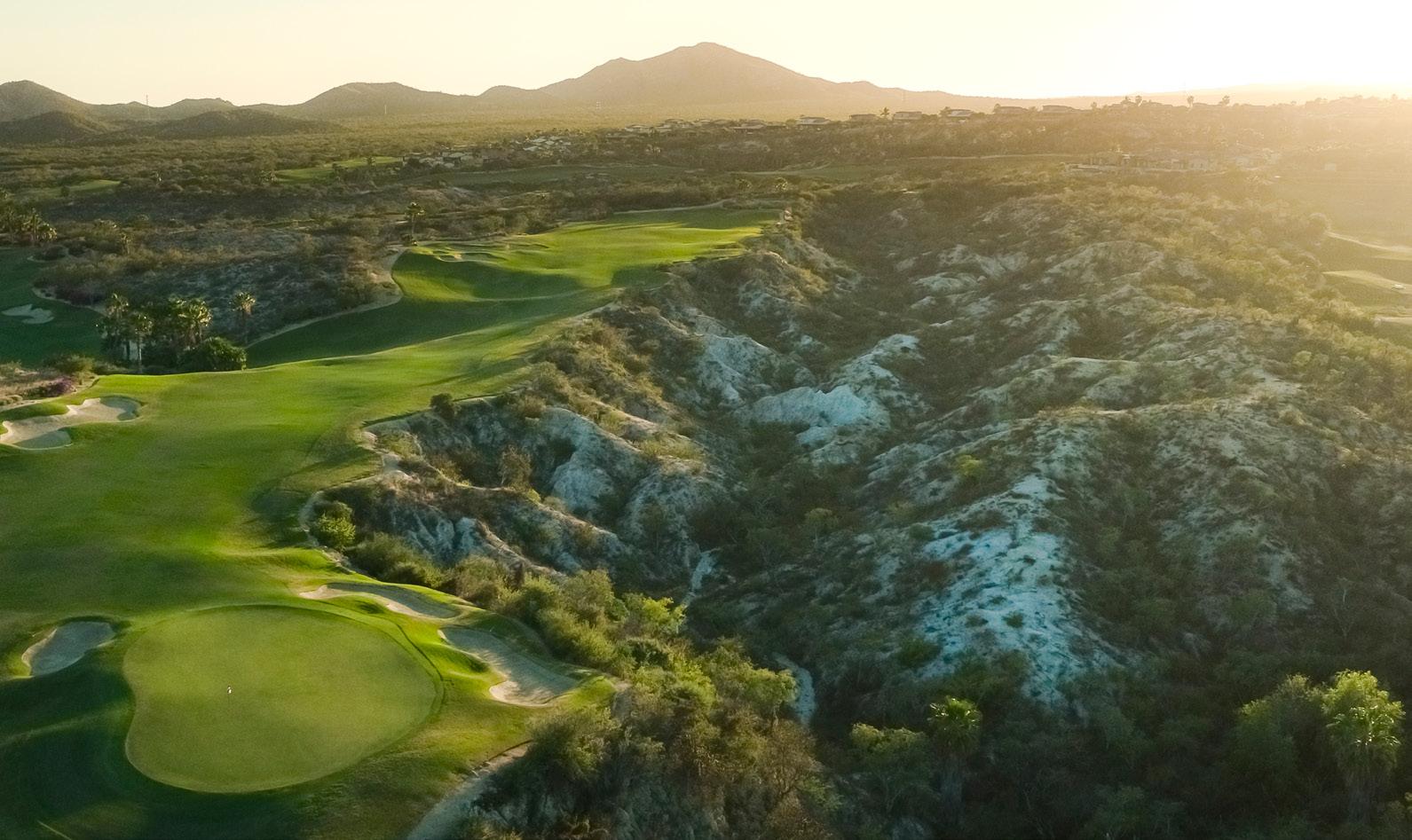 • Der Platz ist in die bergige Wüstenlandschaft der Baja eingebettet und kombiniert geschwungene Fairways und schnelle Greens mit dramatischen Schluchten, natürlichen Bunkern und phänomenalen Ausblicken auf den Golf von Kalifornien.