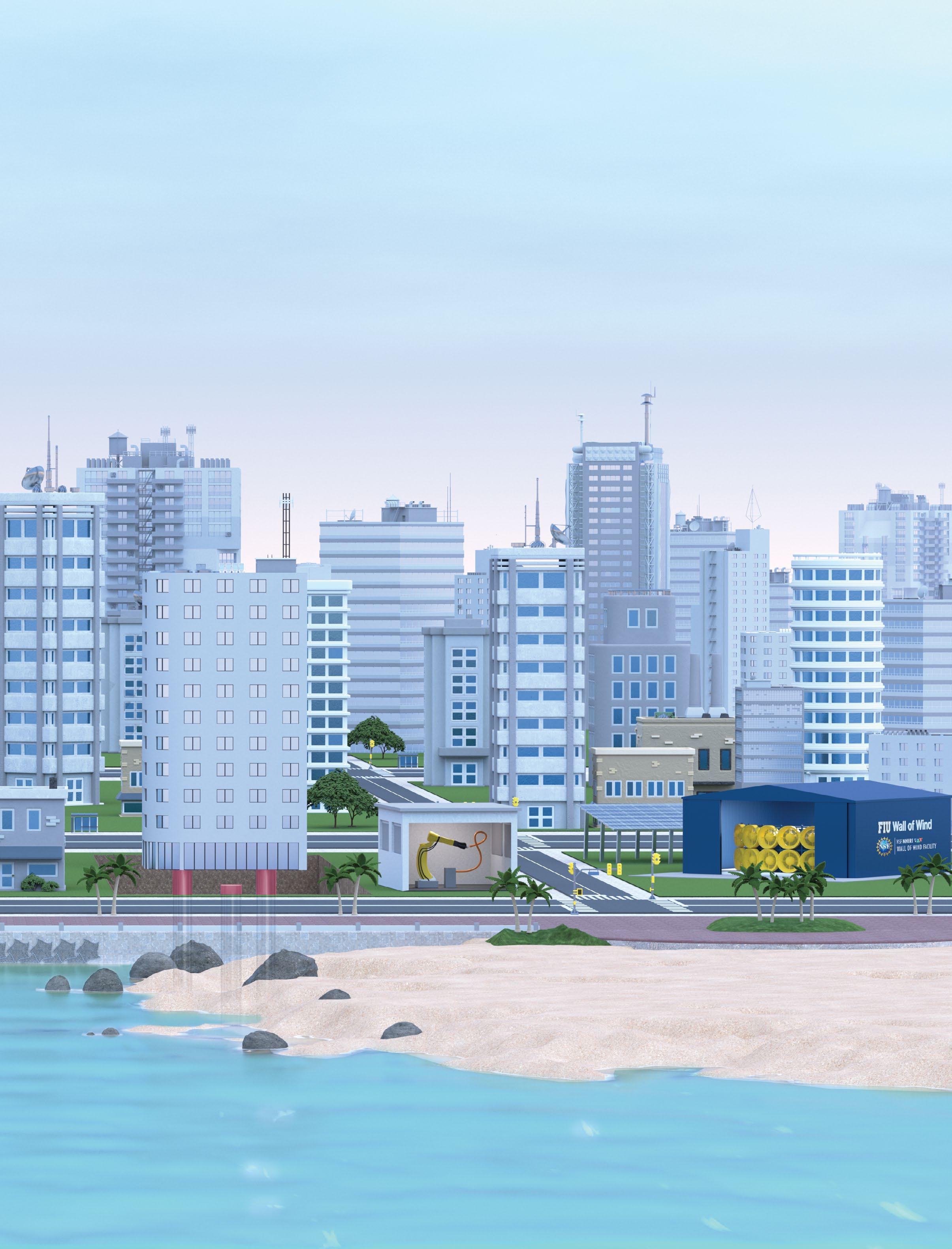 THE SOUTH FLORIDA CLIMATEREADY TECH HUB is led by Miami-Dade County and includes Broward, Monroe and Palm Beach counties and over 40 research and small business partners throughout the region. Funded by the U.S. Department of Commerce’s Economic Development Administration, this program will develop, commercialize and scale tech focused on sustainable and climate resilient infrastructure. FIU is leveraging its deep expertise and world-class research facilities to lead the infrastructure component of this effort in safeguarding our coastal cities and beyond.