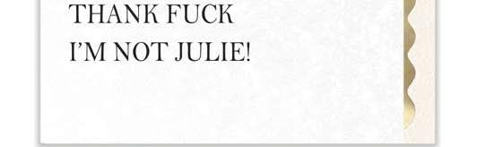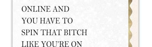 Lifecanbehardandsometimesthebestmedicineisjusttosayithowitis. Whatmakesthisrangesodistincthowever,isthatitisprintedontothemost beautifulsnowwhitepaper,fleckedwithshimminggold(madeinthealps exclusivelyforFiveDollarShake).Applyingaclassicblacktypefont,loveand laughterhasneverlookedsoelegant.Inessence,eachcardjustmightbe themost‘sawthisandthoughtofyou’designyoueverlaideyeson!!