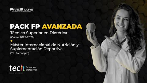 La FP Avanzada se divide en dos partes: FP Oficial: Técnico Superior en Dietética, TSD, de carácter oficial, la cual cuenta con 2000 horas lectivas y está impartida en modalidad online por TECH.