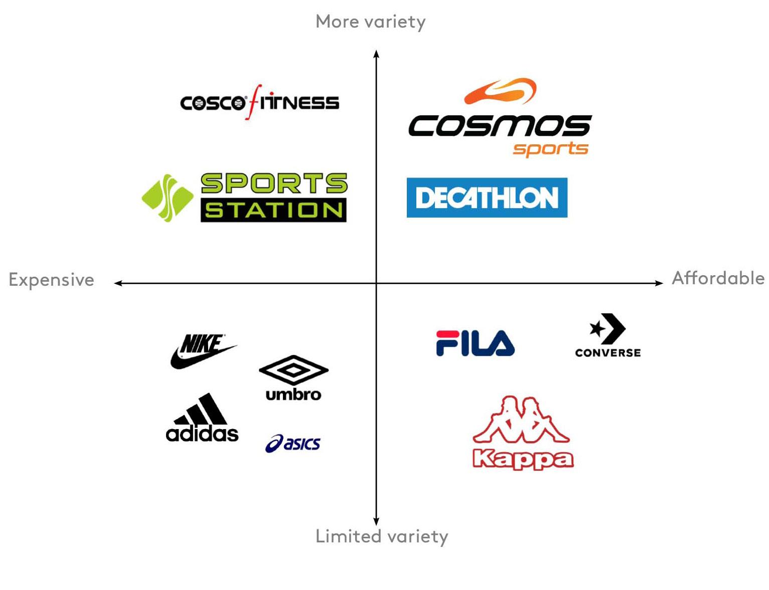 Cosmos has established itself as an affordable one stop solution for sports and fitness segment with wide range of products. Currently, they are positioned like a me-too Decathlon brand where they are creating a brand amongst all these unorganised local vendors in the market. Hence, cosmos needs to have that unique selling proposition to increase its visibility against Decathlon.
