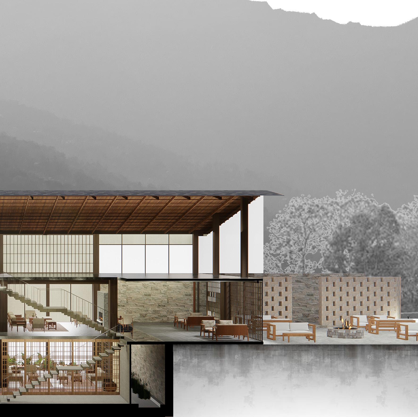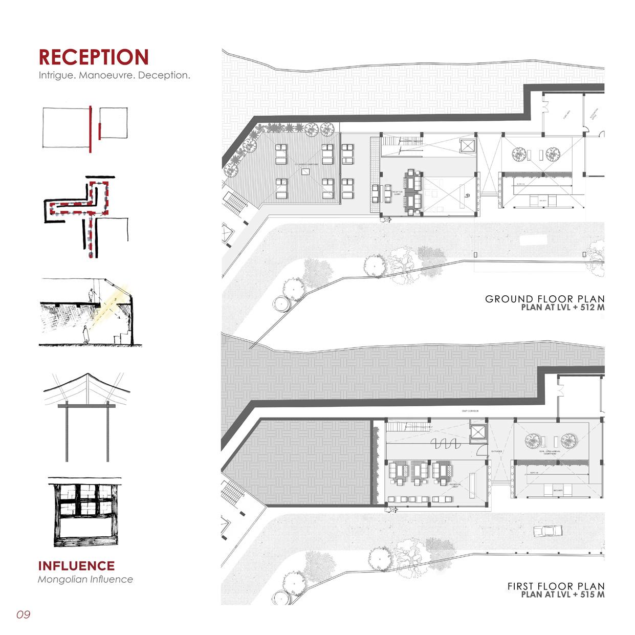 The story is used as a means of narrative spatial experience that led to designing an ambience for each space.