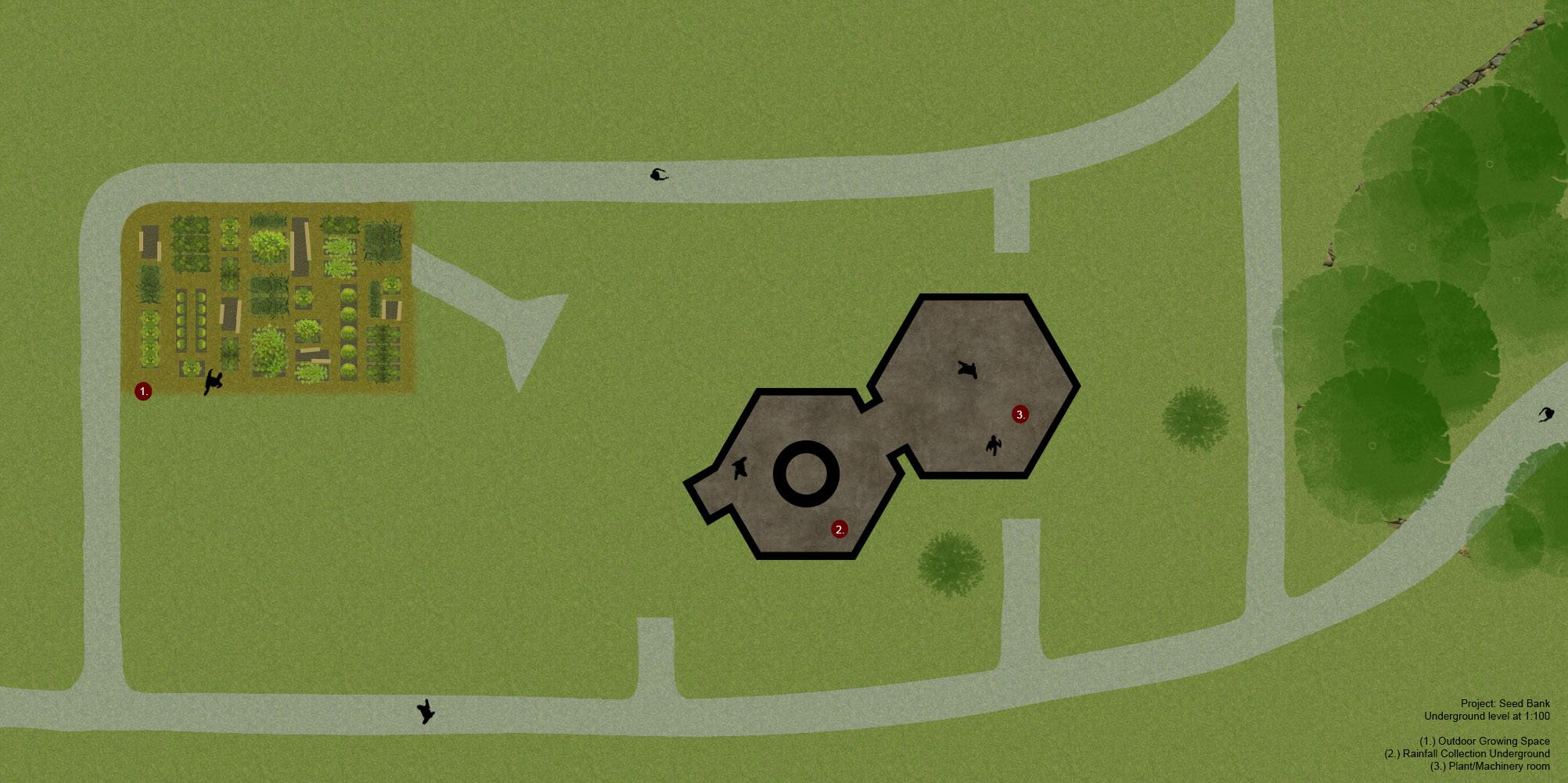 Seed store comprising two spaces for the storage of seeds: Long term storage vault at 75 sqm and an ‘Active’ storage vault at 50 sqm