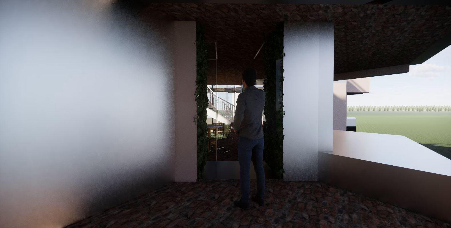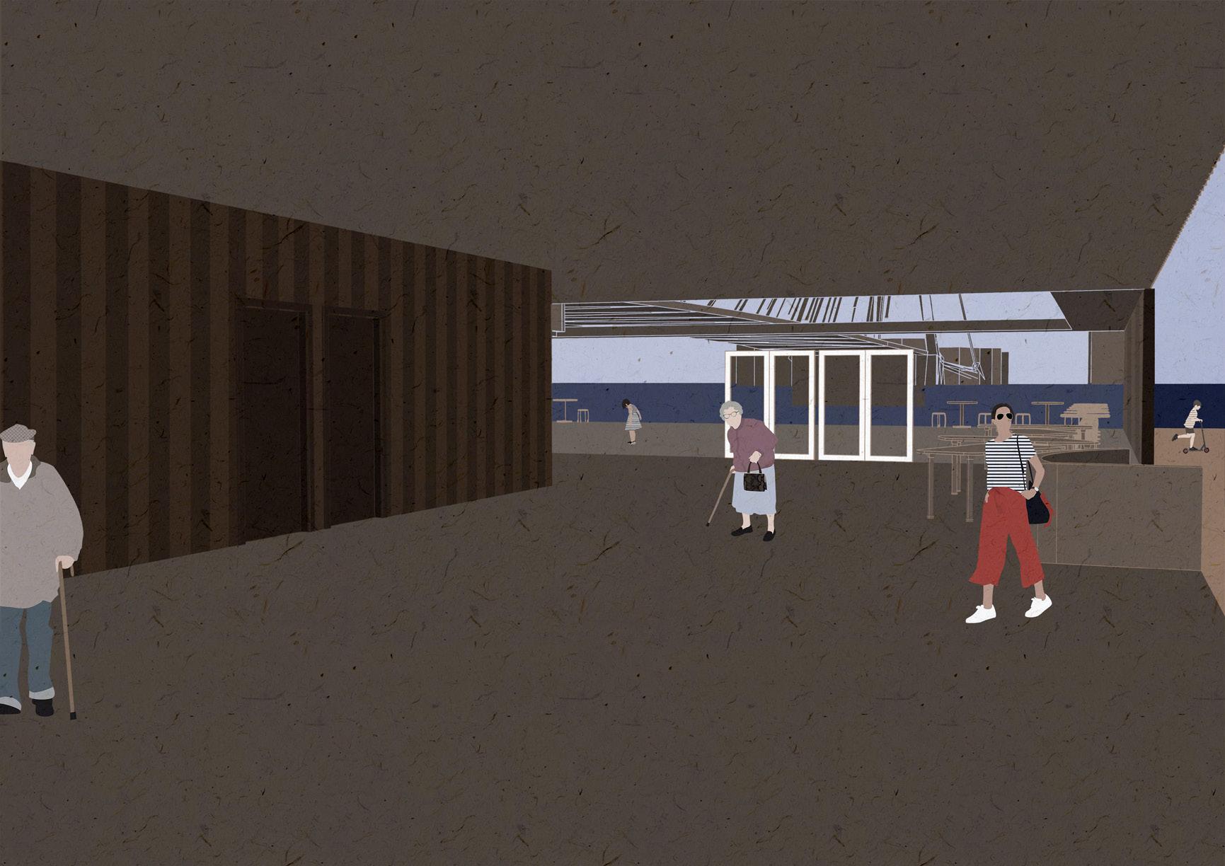 To provide the impression that you have entered a different place, I want to utilise dark cross laminated timber exclusively for the interior flooring separating each section. The wood’s natural grain look and high thermal mass are also appealing to me.