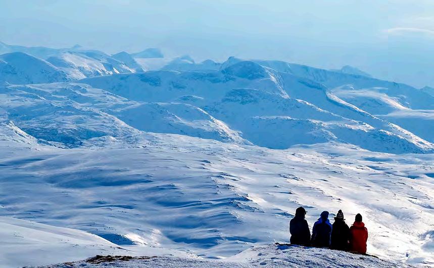 I det här numret av Fjälljournal har vi också begett oss ut i längdspåren för att ta oss an livet, ett stavtag i sänder (s. 58), vi har upplevt vild wellness på Abisko Mountain Lodge (s. 66) och tillsammans med fyra personer som har hela världen som sin arbetsplats har vi försökt reda ut vad det är som får dem att alltid återkomma till Riksgränsen (s. 84). Vi har även besökt familjen som varje år återkommer till Kirunafjällen för att i sitt familjeföretag erbjuda människor från hela världen möjlighet att uppleva magi i midnattsljus (s. 72).