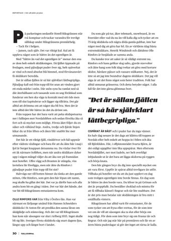 Vi berättar om det där magiska ljuset, det som varje vår får skidåkare från världens alla hörn att resa 200 km norr om Polcirkeln (s. 82). Och så berättar vi om toppturer, vad de gör med människor och hur de faktiskt kan förändra liv (s. 42).