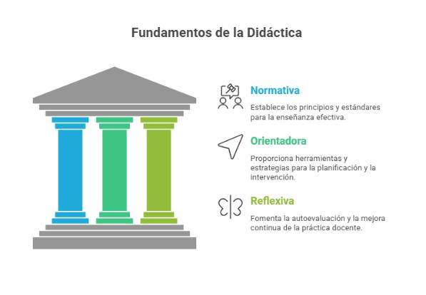 Las funciones de La Didáctica: El motor de la práctica, en el proceso de enseñanza - aprendizaje, estas funciones permiten que el docente transite de ser un mero transmisor de información a convertirse en un gestor del conocimiento. A continuación, se analizan las funciones normativa, orientadora y reflexiva, las cuales actúan como el andamiaje sobre el cual se construye o se diseña la planificación docente, garantizando que el acto educativo sea, al mismo tiempo, un proceso científicamente validado, estratégicamente dirigido y críticamente evaluado.