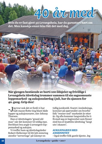 Når gjengen bestående av borti 100 ildsjeler og frivillige i Levangsheia idrettslag trommer sammen til sin sagnomsuste loppemarked- og auksjonslørdag i juli, har du sjansen for 40. gang. Grip den!