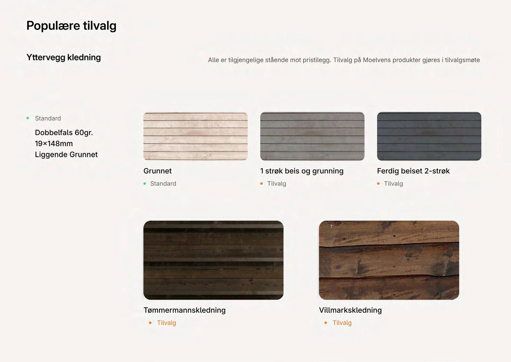 Gjør fleksible endringer på alt fra romfordeling til materialer i tilvalgskatalogen.