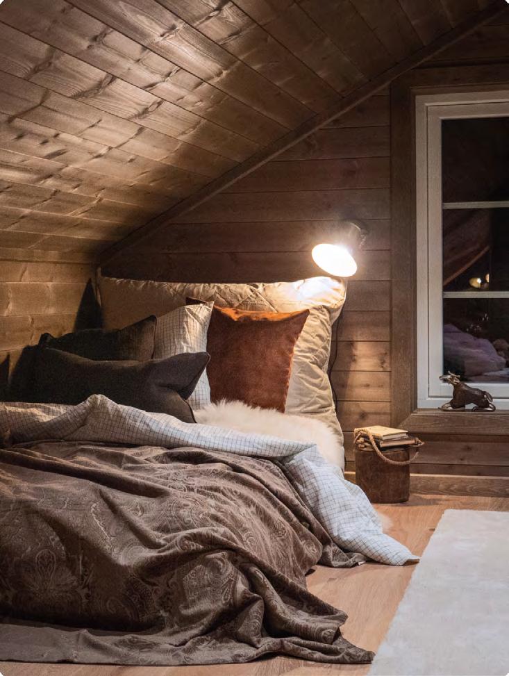 En kompakt, men raffinert hytte med smarte løsninger som sikrer maksimal komfort for den moderne fjellentusiasten. Perfekt for tomter med mindre plass, uten at det går på bekostning av kvalitet og stil.