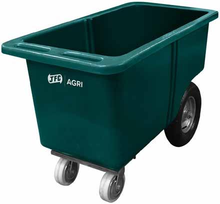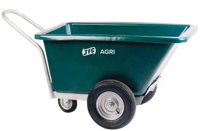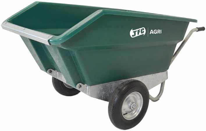 Kraftig fôrtralle med to hjul og kraftig tippemekanisme. Forsterket med stållist i front.