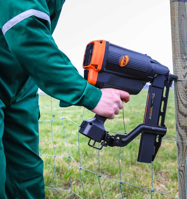 Gassdrevet. For montering av sauenett/ flettverk/streng. Enkel å ta med. 1 100 skudd pr. gasspatron. 5 200 skudd pr. opplading. Plastkoffert. 2 stk. batterier 1,65Ah. Batterilader. 970269H11562